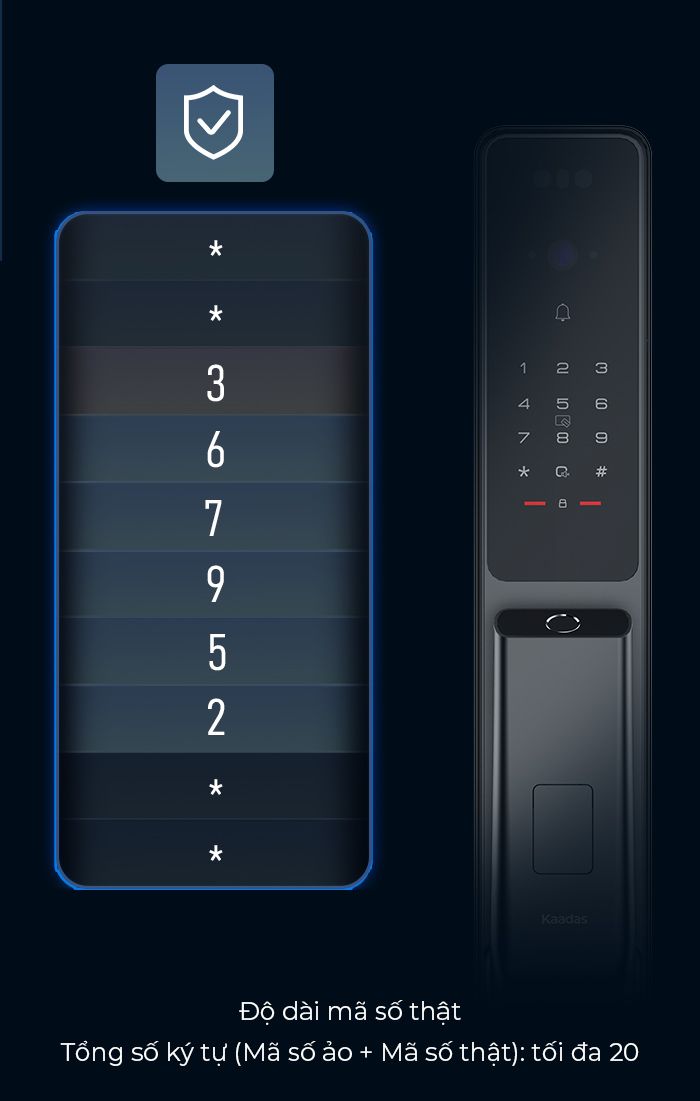 - Chức năng mã số ảo: Cho phép nhập ngẫu nhiên các số trước và sau mã số thật để ngăn chặn kẻ gian nhìn lén từ bên ngoài.